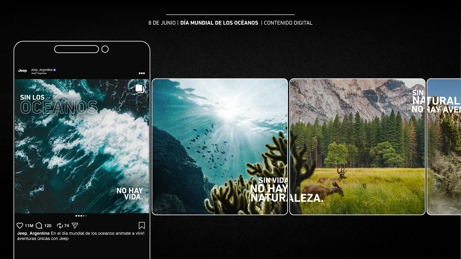 Ideas creativas para el pilar sustentable de OneEarth de Jeep según efemerides estratégicas para la marca para su canal digital.
